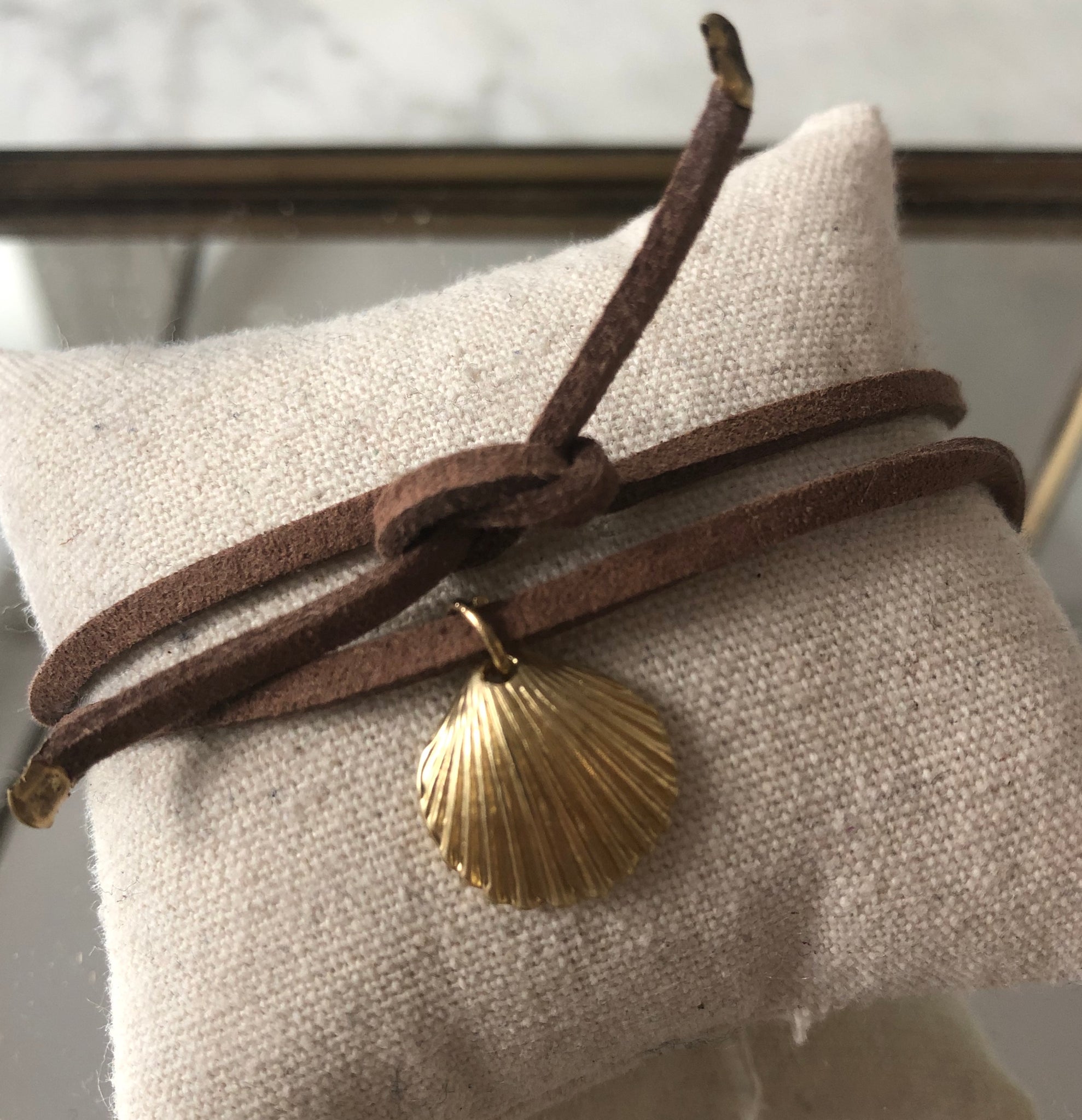 Lien en simili cuir de couleur, coquillage simple en acier inoxydable doré